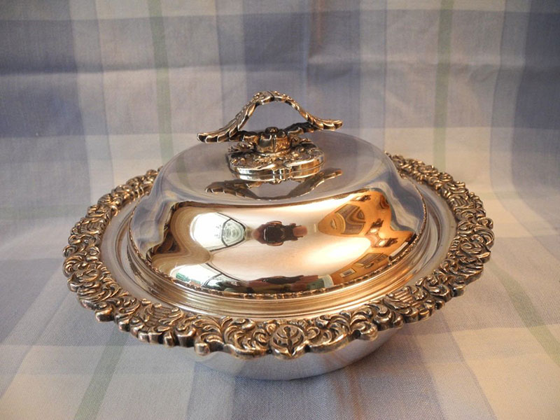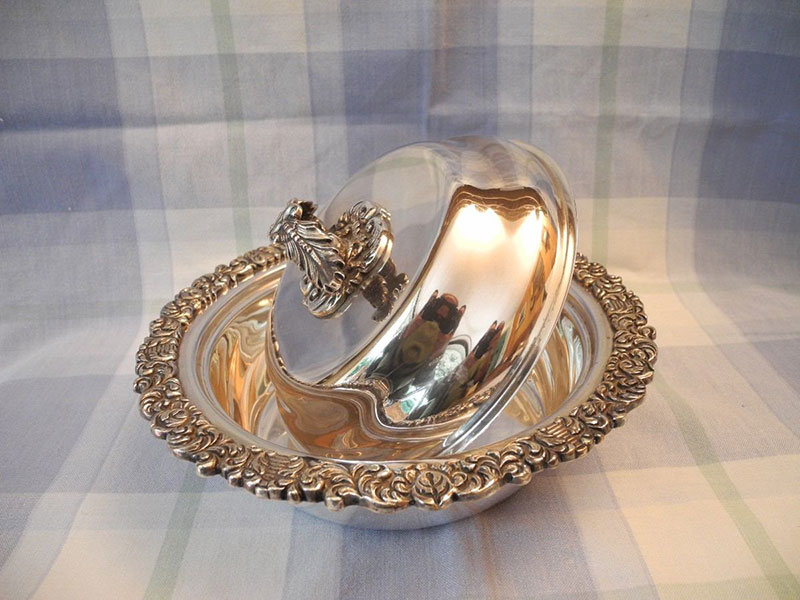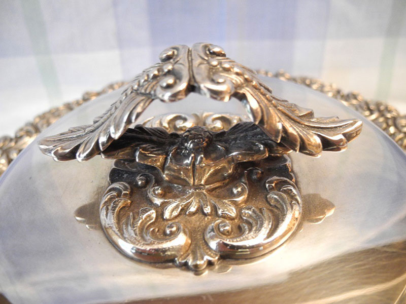 Este centro de mesa tiene una medida de 24 cm de diámetro y 14 cm de alto incluida la tapa. Tiene una exquisita decoración de guirnaldas en relieve y típicos grabados de las piezas Sheffield El estado es excelente considerando su antiguedad.