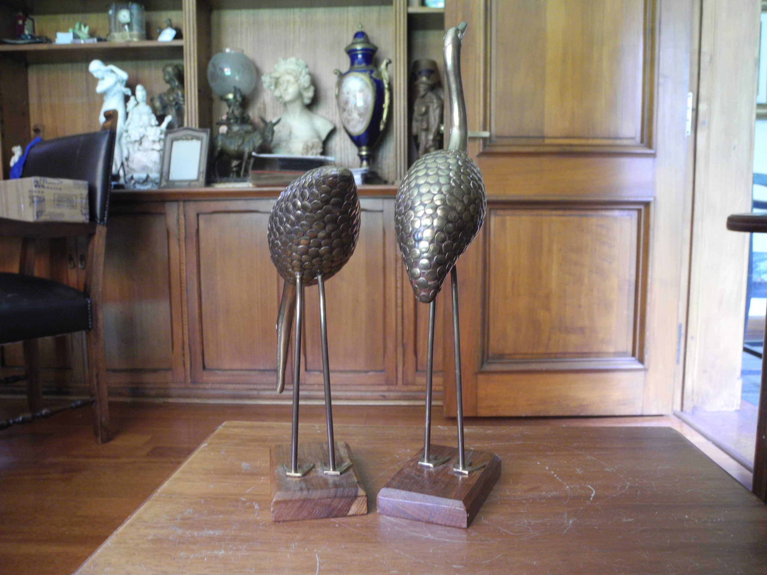 Par de garzas decorativas Artesanas antiguas 39 cm altura la garza mas alta.