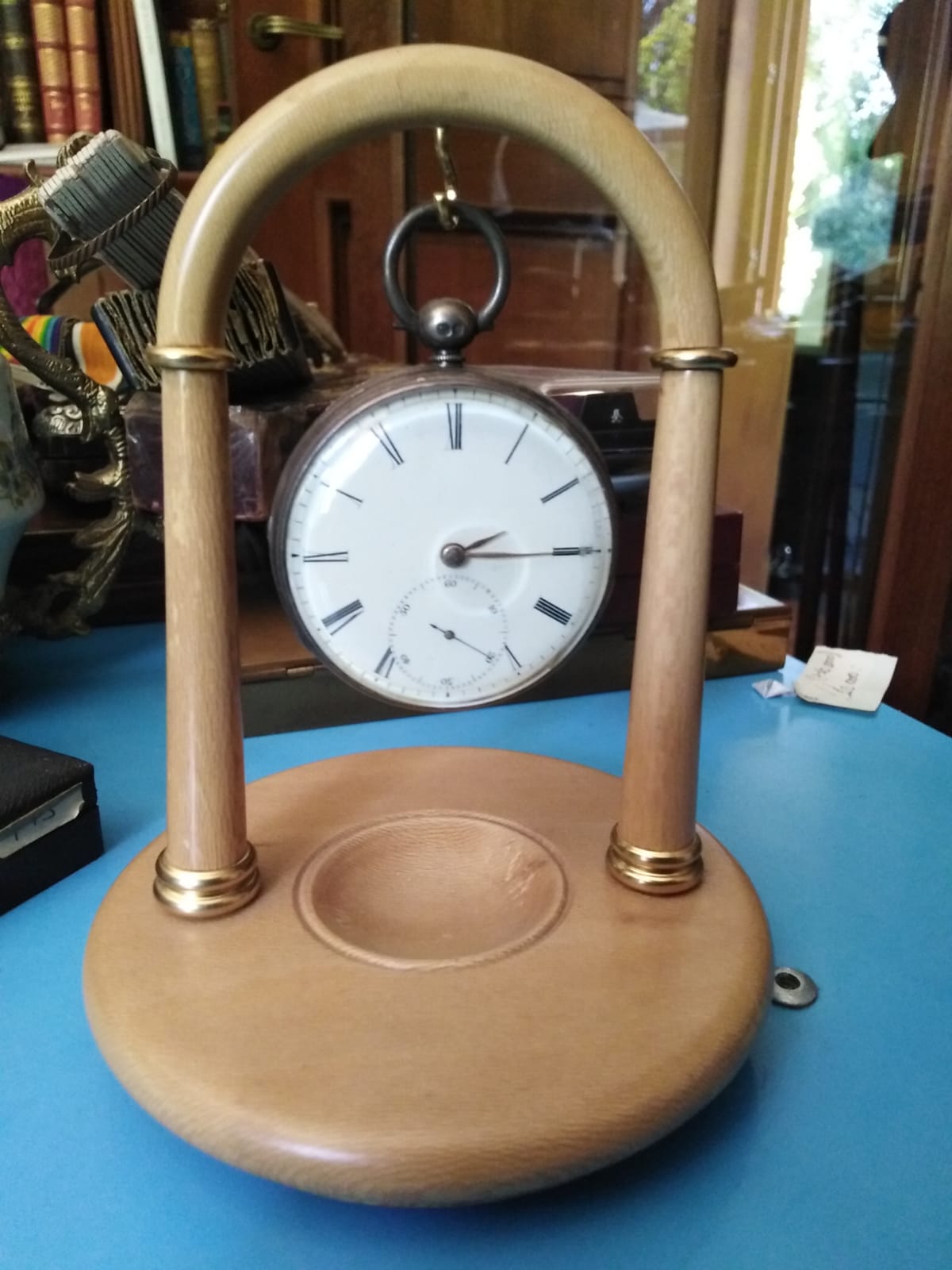 Bello reloj de bolsillo decorativo en un arco de madera para adorno.