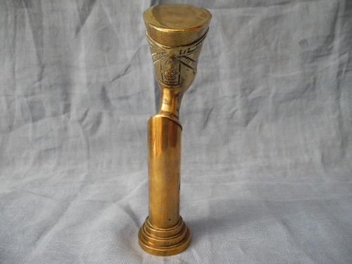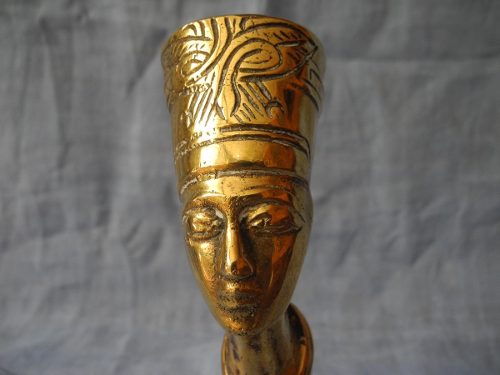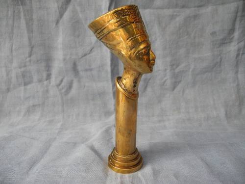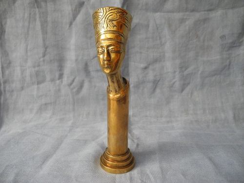 Bronce que recrea una columna egipcia con el busto de Nefertiti en su cúspide. Indudablemente de estilo art nouveau art deco realizado a principios del siglo XX en donde era sumamente común la utilización de los motivos egipcios alentados por la moda impuesta por el descubrimiento de la tumba del faraón Tutankamon en 1922. Los detalles del rostro son finamente marcados y evidentemente sacados del Busto de Nefertiti realizado por el escultor real Tumtose , maestro escultor durante el reinado de Ajetaton (1300 ac) y descubierta en 1913 cuando se la bautizó como ?la Mona Lisa Amarna? o ?la Bruja?. Es una bella pieza demostrativa de la fusión de dos estilos separados por milenios y unidos por la sensibilidad y la creatividad del ser humano