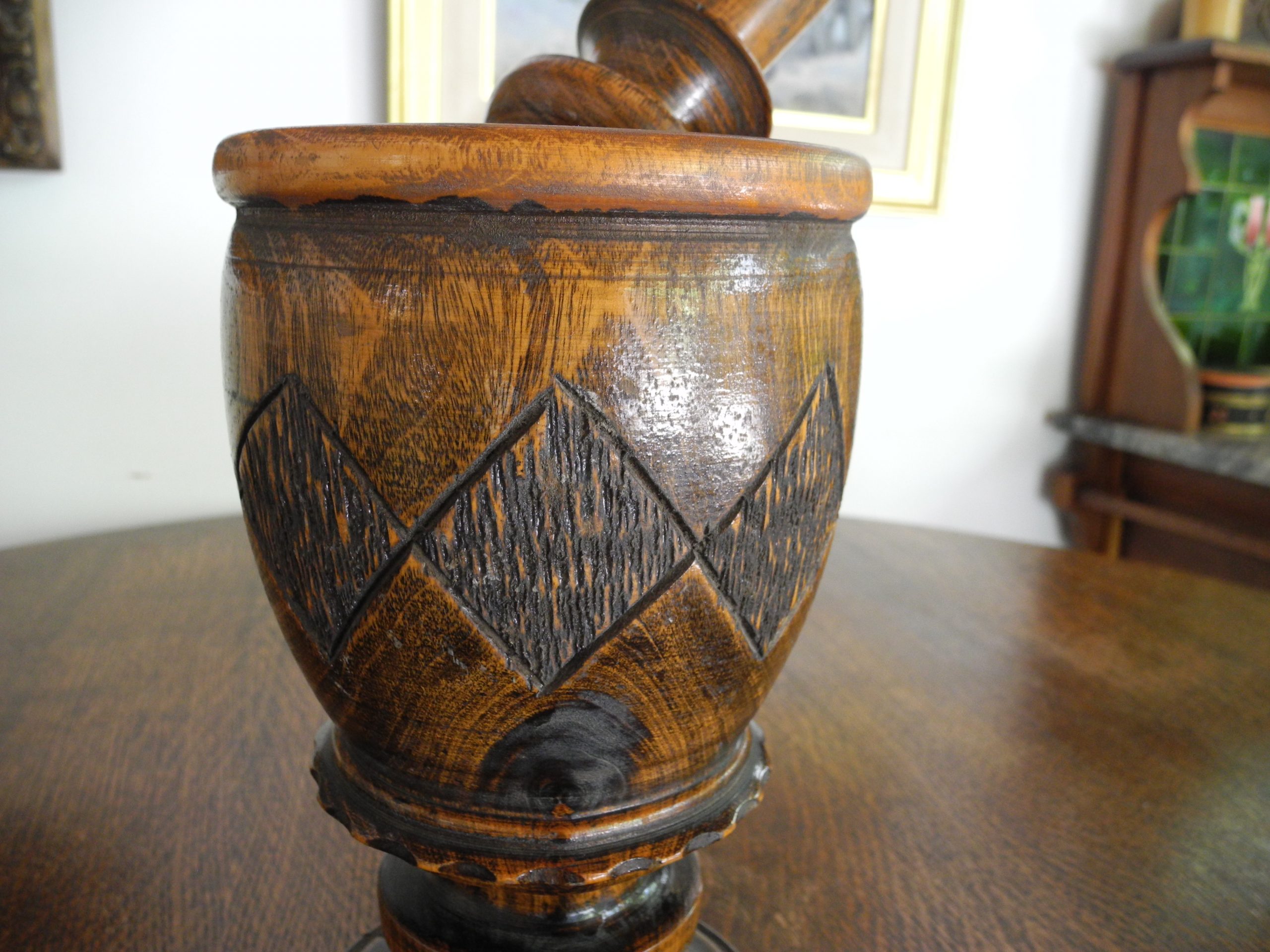 Mortero o copon antiguo de madera de guindo!! 2.3 kgs