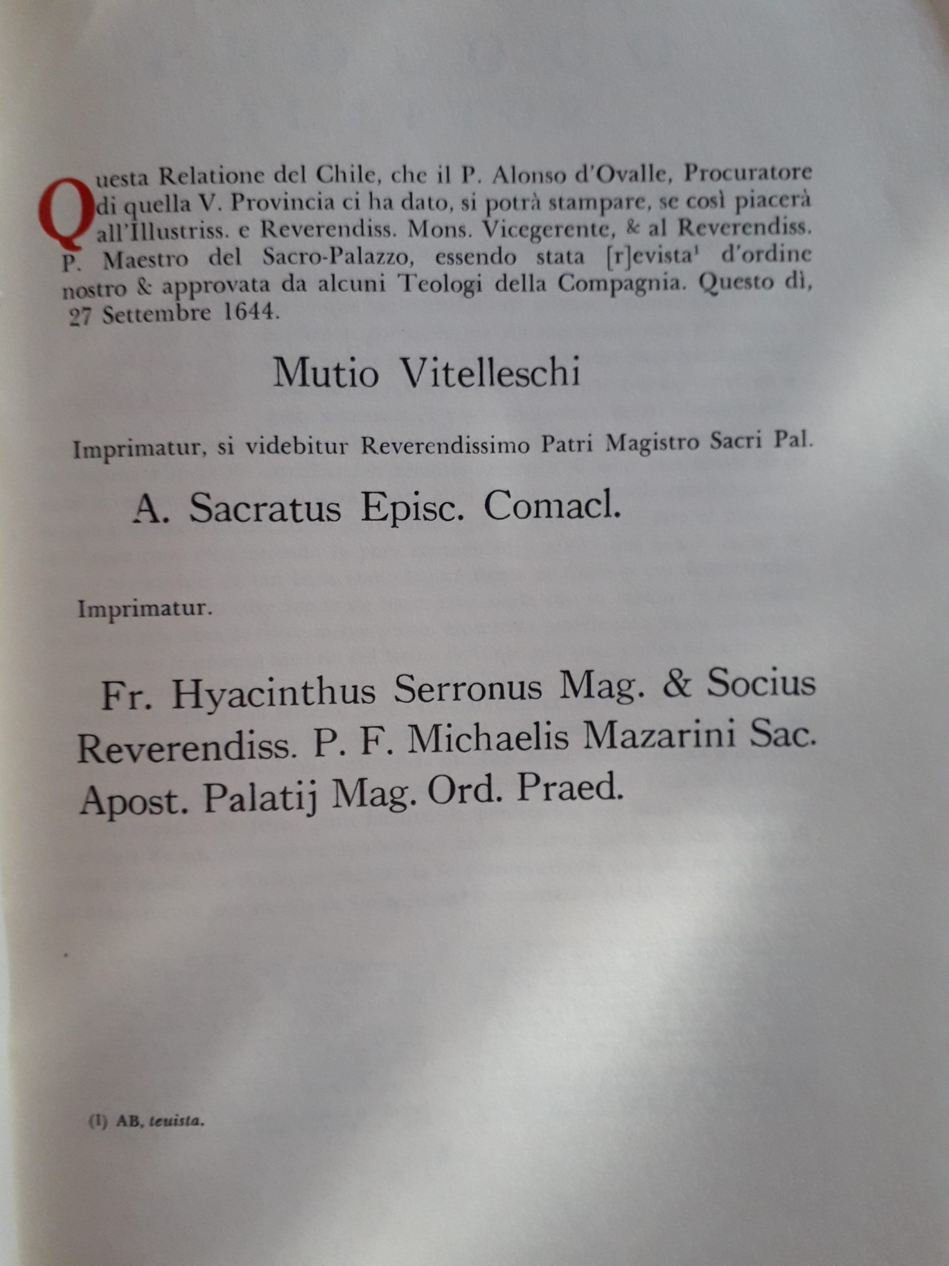 Alonso de Ovalle nació en 1601, en una familia de poderosos encomenderos. A los 17 años se fugó de la casa de sus padres para ingresar a la Compañía de Jesús. Tras ocho años de estudios en Córdoba volvió a Santiago, donde se dedicó a la enseñanza. En 1640, con motivo de la creación de la nueva vice-provincia eclesiástica de Chile, la Compañía de Jesús lo envió a Roma en calidad de procurador, con la finalidad de que consiguiera nuevos recursos y, especialmente, religiosos que atendieran espiritualmente al país. Debido a la escasez de sacerdotes disponibles en España, Ovalle dedicó su tiempo a redactar una relación histórica de Chile mediante la cual se diera a conocer el país, con el objeto de atraer un número mayor de religiosos. De este modo, con una minuciosa descripción de distintos aspectos del país y acompañada de numerosas ilustraciones, la Histórica relación del Reyno de Chile (1646) se convirtió en la primera obra histórica y descriptiva de Chile en Europa. Traducida al año siguiente al italiano, la difusión no tuvo los efectos esperados por Ovalle, puesto que la Corona española prohibió el ingreso a América de los sacerdotes que había reunido por el hecho de ser extranjeros. Por lo demás, ese mismo año un gran terremoto redujo a ruinas la ciudad de Santiago, cuyo Cabildo encargó a Ovalle que hiciera las gestiones necesarias ante la Corona para ayudar a la reconstrucción de la ciudad. Aprovechando la oportunidad, también consiguió el permiso para enviar a los sacerdotes, con los que partió a Chile en 1650. Sin embargo murió cerca de Lima sin ver el resultado de su empresa.