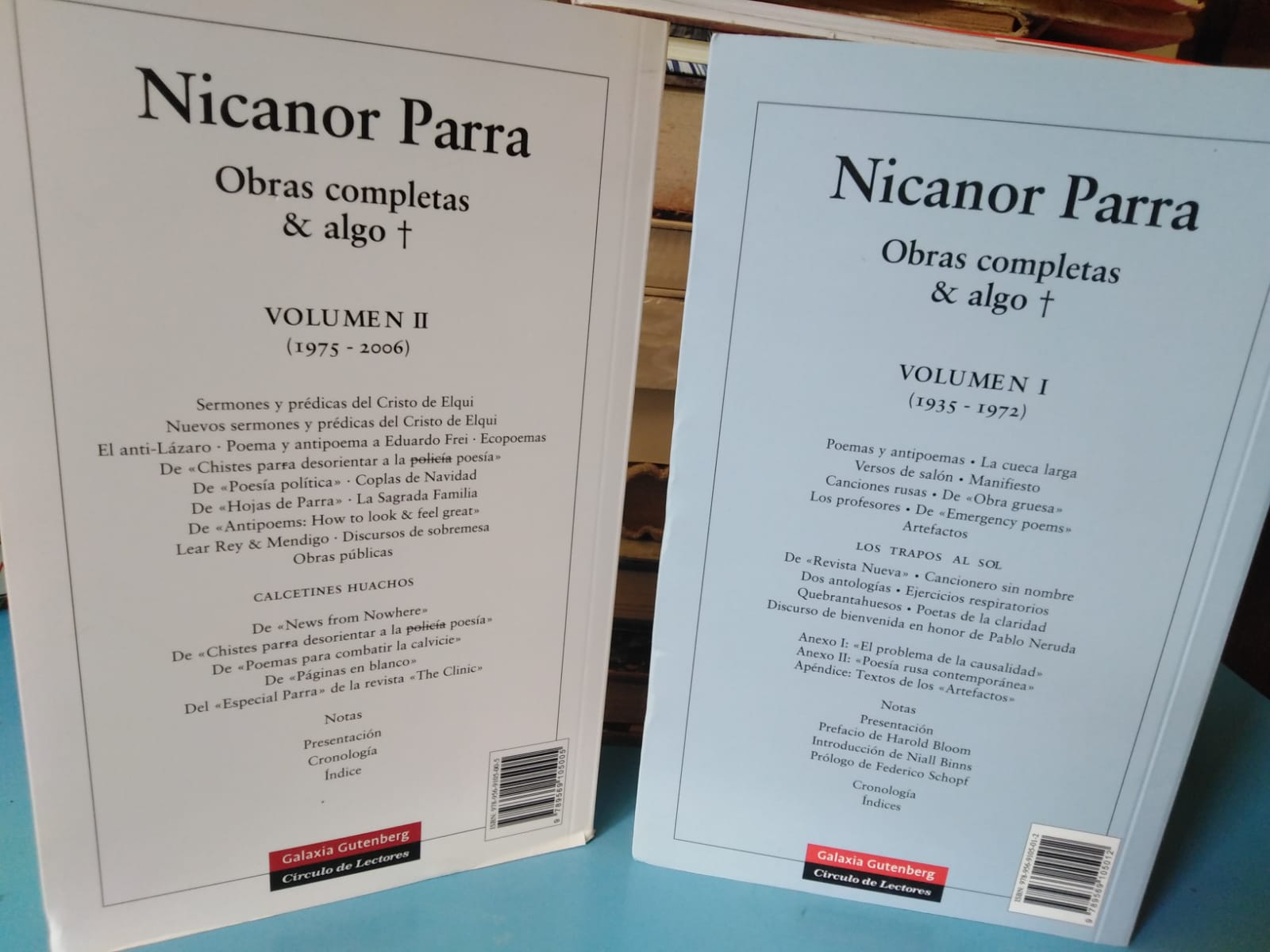 «La poesía de Nicanor Parra es muy original, muy poderosa y emocionante, creo que merece el Premio Nobel de Literatura y no tengo claro por qué no se lo han dado todavía. Es, incuestionablemente, uno de los mejores poetas de Occidente». Así de rotundo se manifestaba el crítico norteamericano Harold Bloom poco antes de que Galaxia Gutenberg y Círculo de Lectores emprendieran el proyecto de editar las obras completas del poeta chileno. Este primer volumen contiene novedades sensacionales, dado que por vez primera se recuperan aquí textos (poemas enteros, traducciones, discursos y otros escritos dispersos) que no habían vuelto a publicarse desde los años treinta del pasado siglo, así como la totalidad de sus Artefactos, de 1972. Incluye, además, 250 páginas de poemas visuales. 1067 pp.