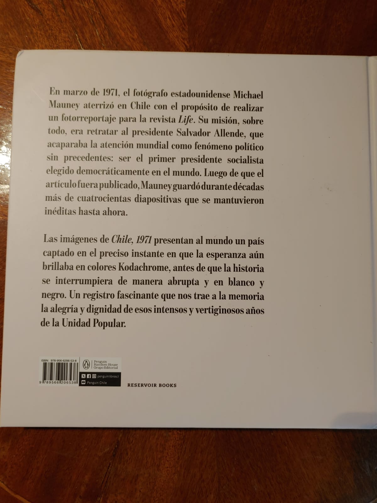 Luego de que el artículo fuera publicado, Mauney guardó durante décadas más de cuatrocientas diapositivas que se mantuvieron inéditas hasta ahora. Las imágenes de Chile, 1971 presentan al mundo un país captado en el preciso instante en que la esperanza aún brillaba en colores Kodachrome, antes de que la historia se interrumpiera de manera abrupta y en blanco y negro. Un registro fascinante que nos trae a la memoria la alegría y dignidad de esos intensos y vertiginosos años de la Unidad Popular.