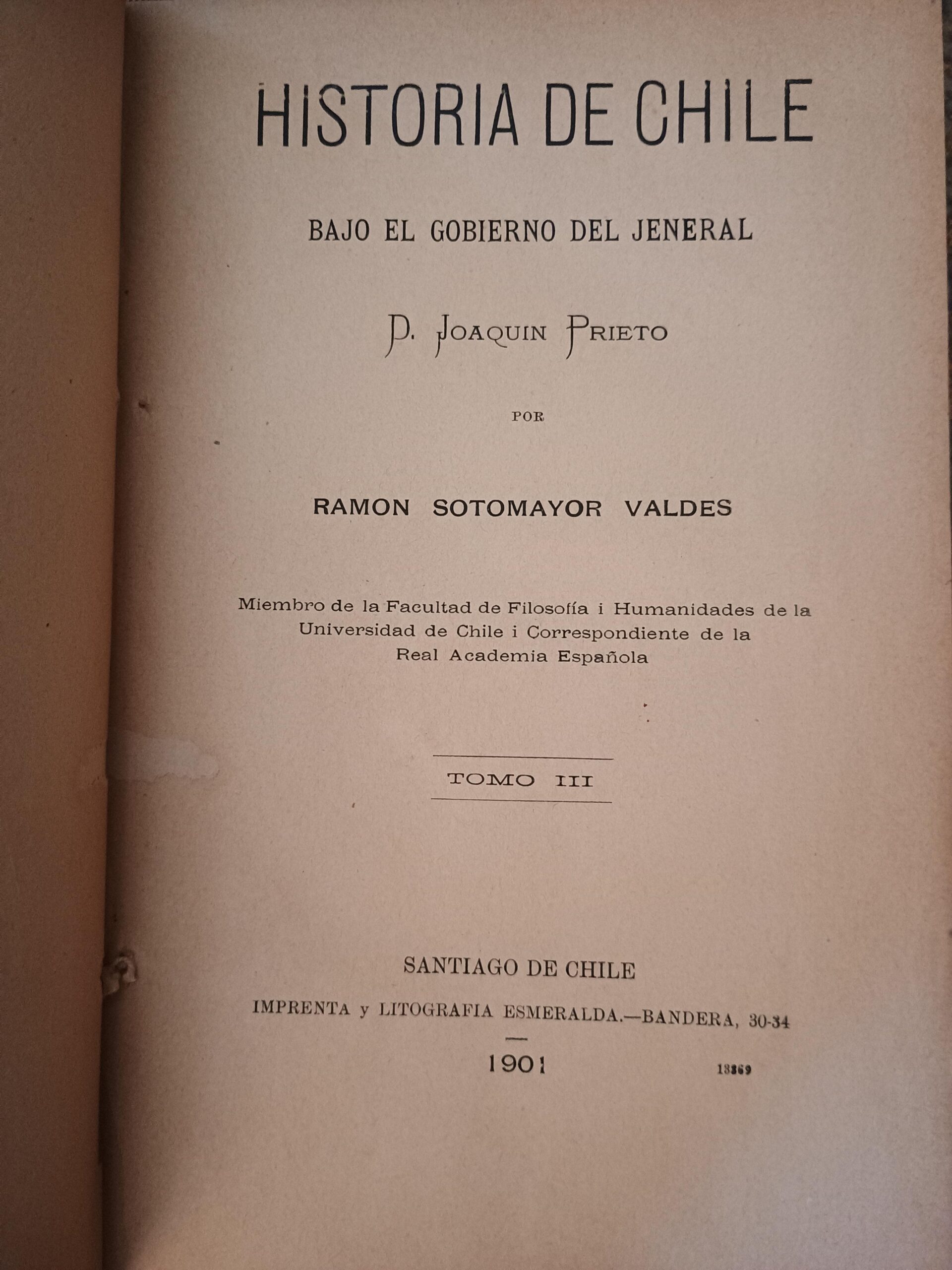 Título: Historia de Chile bajo el Gobierno del jeneral P. Joaquín Prieto