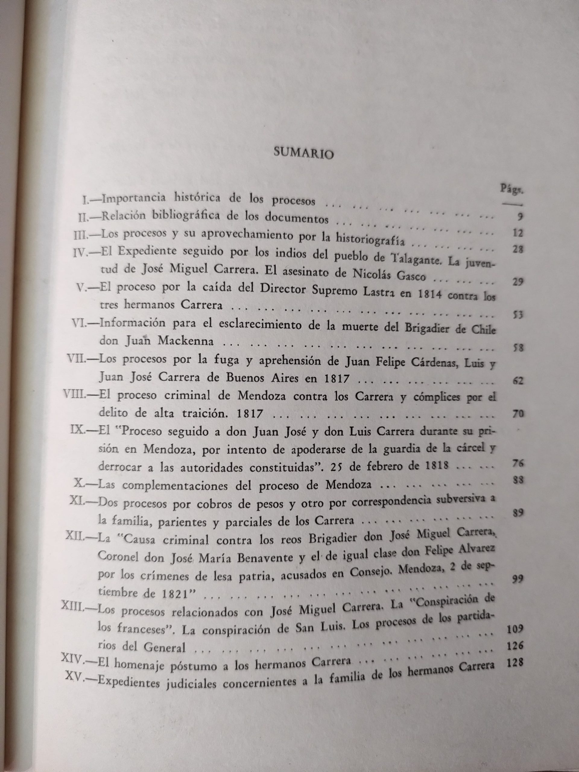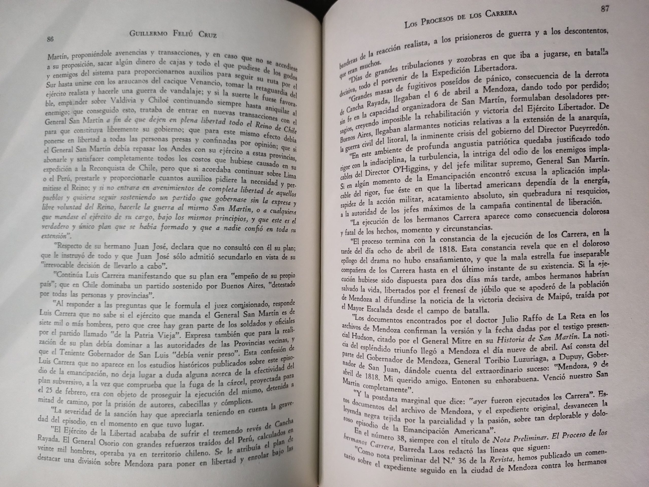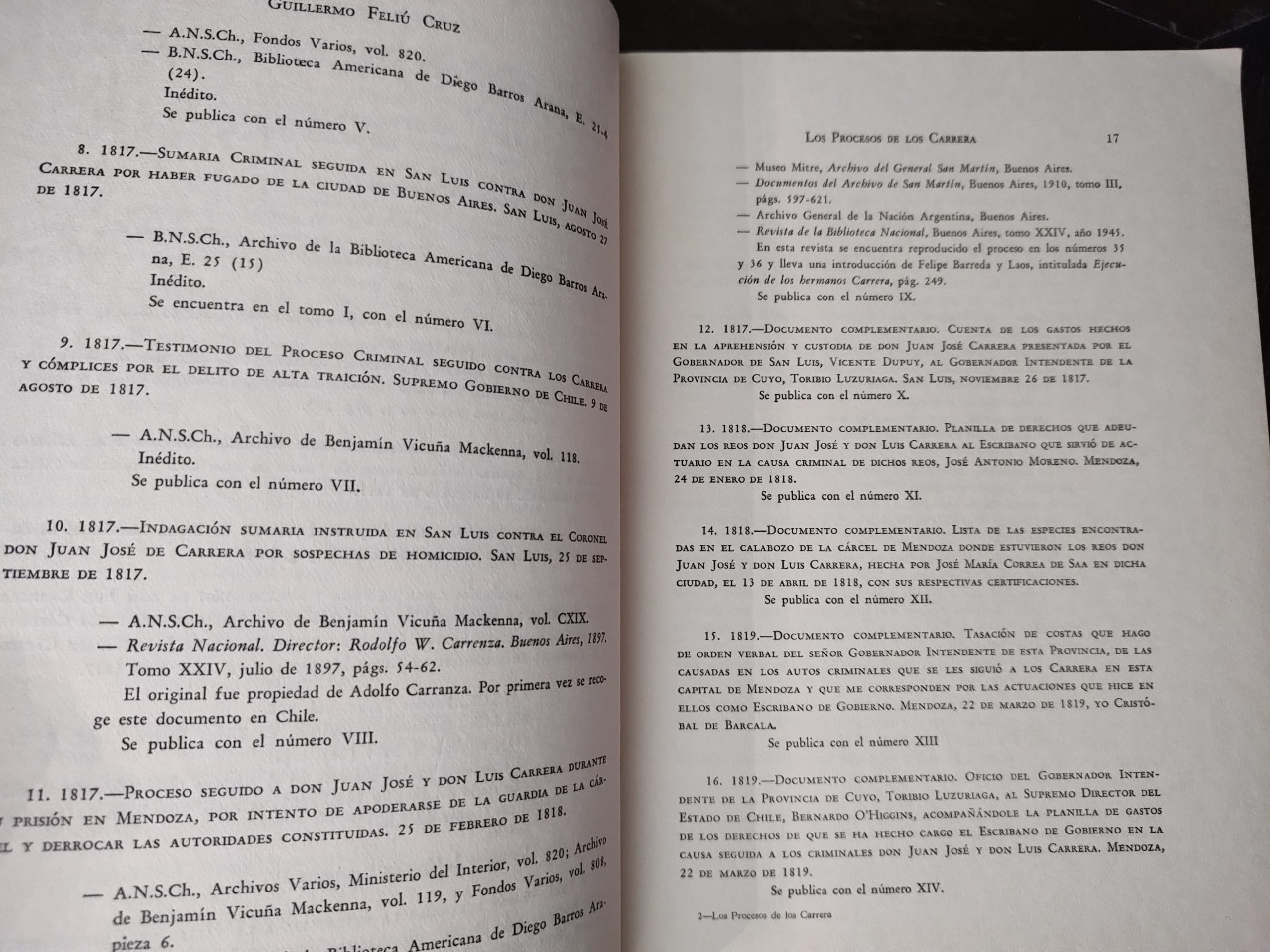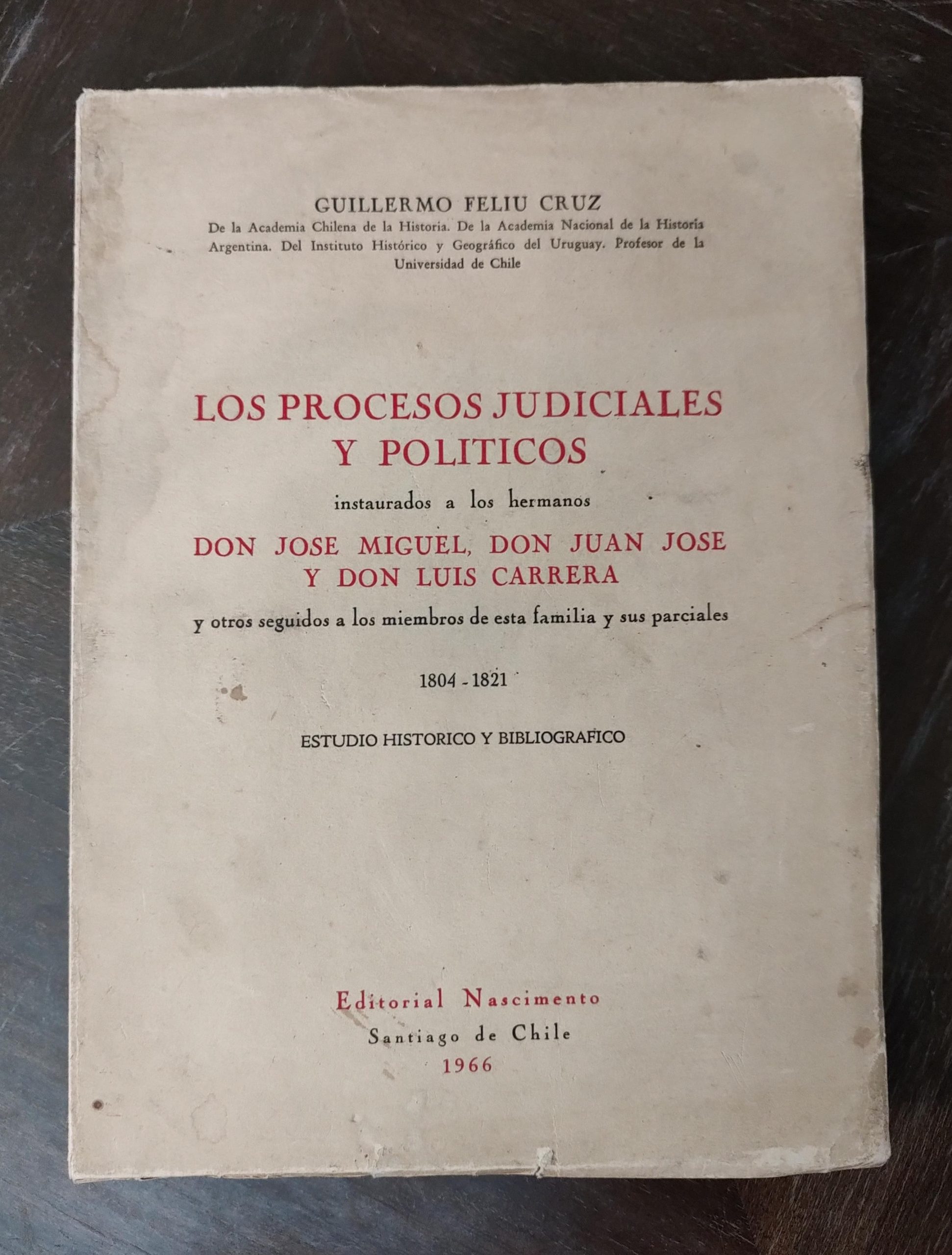 Guillermo Feliu Cruz. Los procesos judiciales y políticos instaurados a los hermanos don José Miguel, don Juan José y don Luis Carrera: y otros seguidos a los miembros de esta familia y sus parciales: 1804-1821.