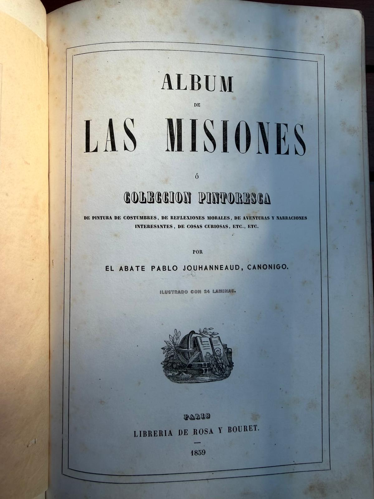 ÁLBUM DE LAS MISIONES o Colección Pintoresca de pintura de costumbres, de reflexiones morales, de aventuras y narraciones interesantes, de cosas curiosas, etc. ilustrado con 24 láminas por El Abate Pablo JOUHANNEAUD canónigo