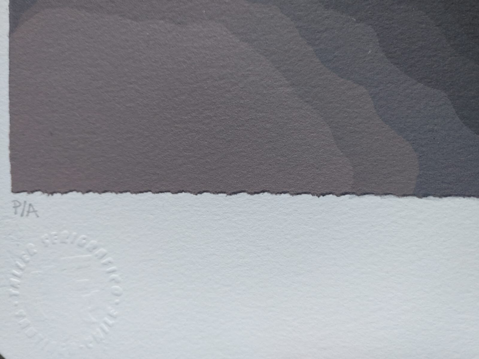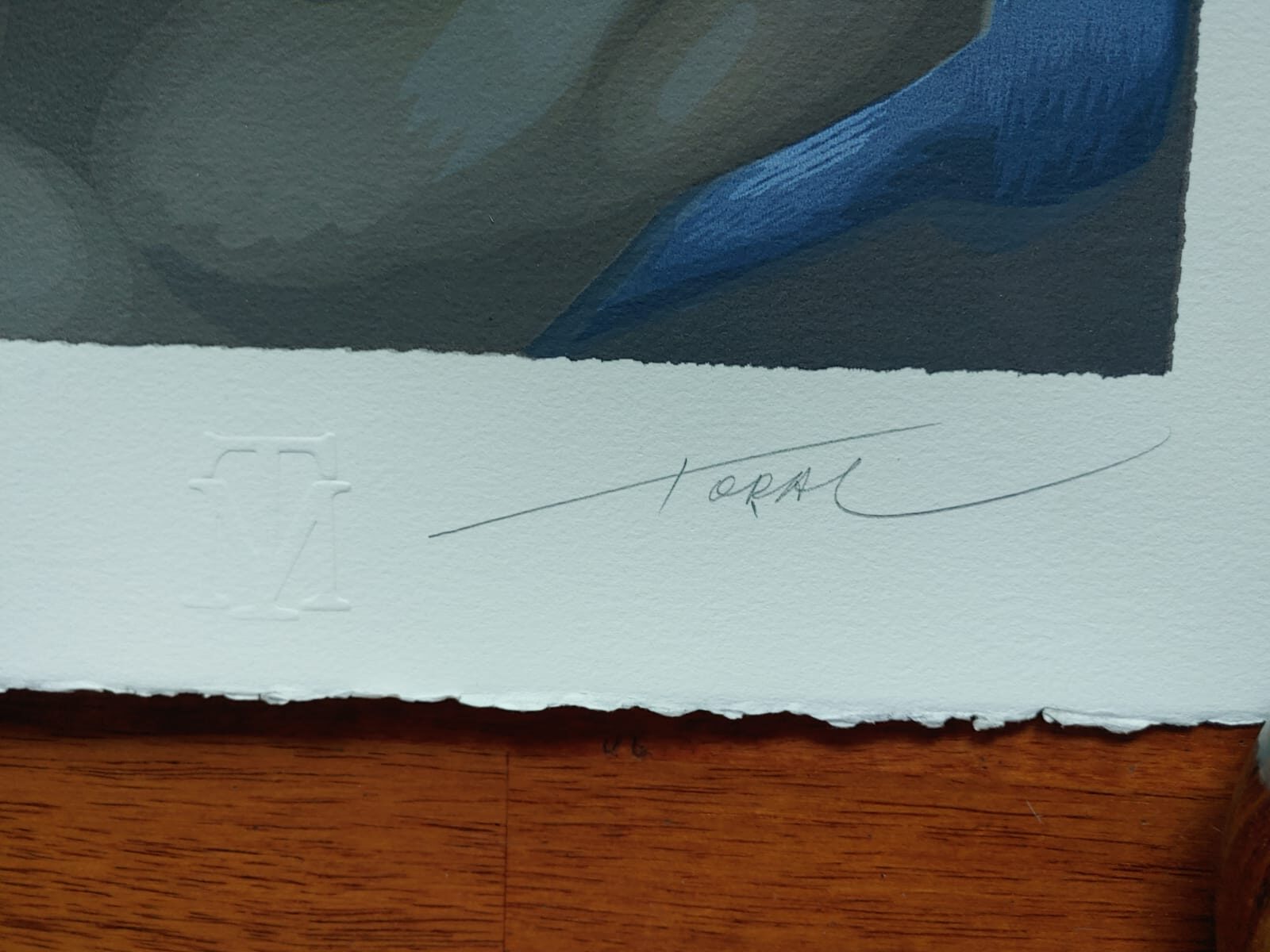 La obra que se aprecia en las imágenes mide 76 x55 cm (aprox. Papel), 64 x44cm (aprox. Imagen), con el cuño del artista y firmada a mano en el extremo inferior derecho con lápiz grafito, corresponde a un grabado original (serigrafía a color sobre papel de algodón, del maestro chileno Mario Toral Muñoz, “sin título”.